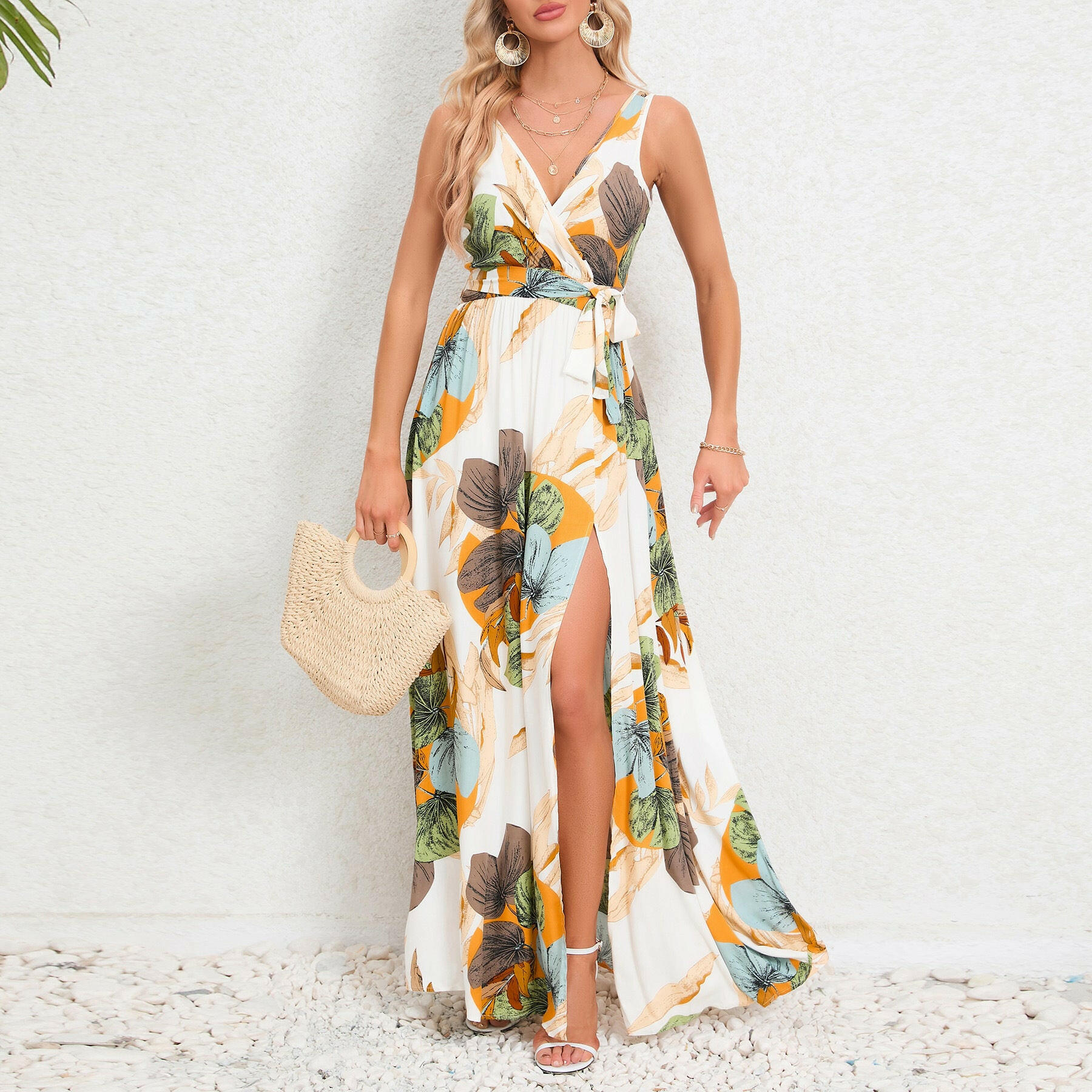 Summer Dress Fashion with Waist Tie and Slit Detail