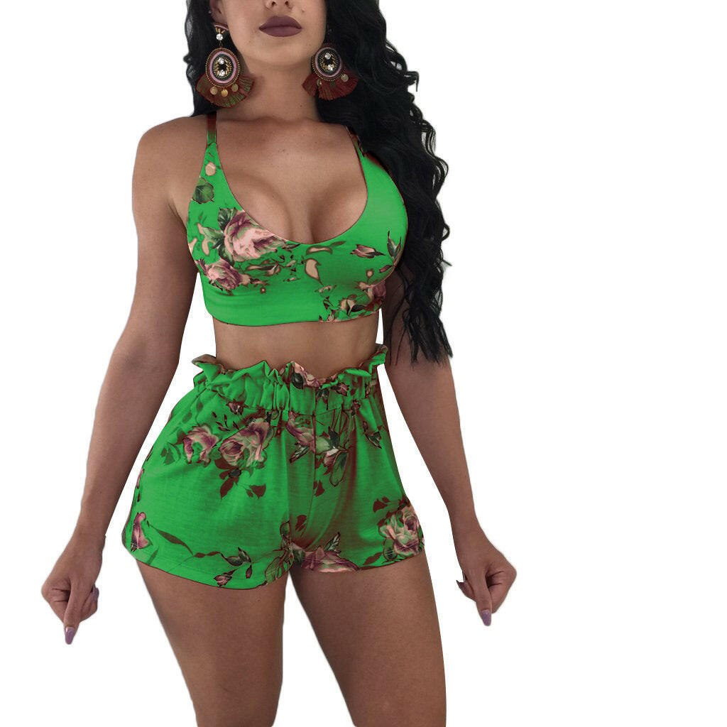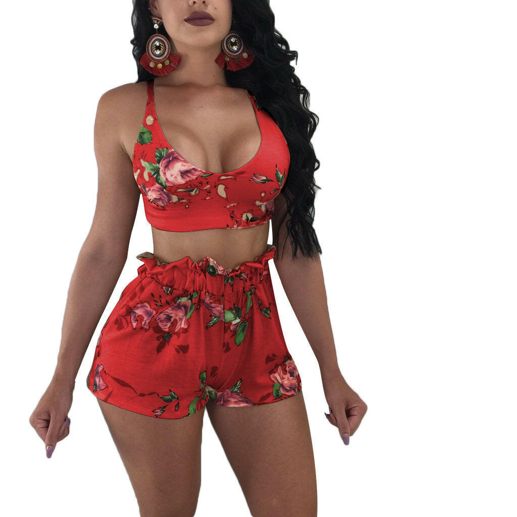 Elevate your summer wardrobe with a touch of elegance and style with these Two-piece Lace-Up Shorts. Featuring a trendy lotus leaf design and vibrant printing, these shorts are available in beige, red, green, black, blue, and burgundy. Available in sizes S, M, L, and XL, these shorts are perfect for any occasion.