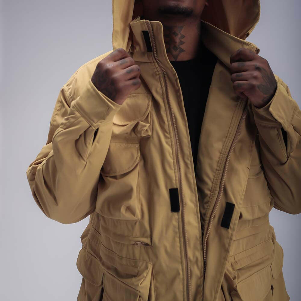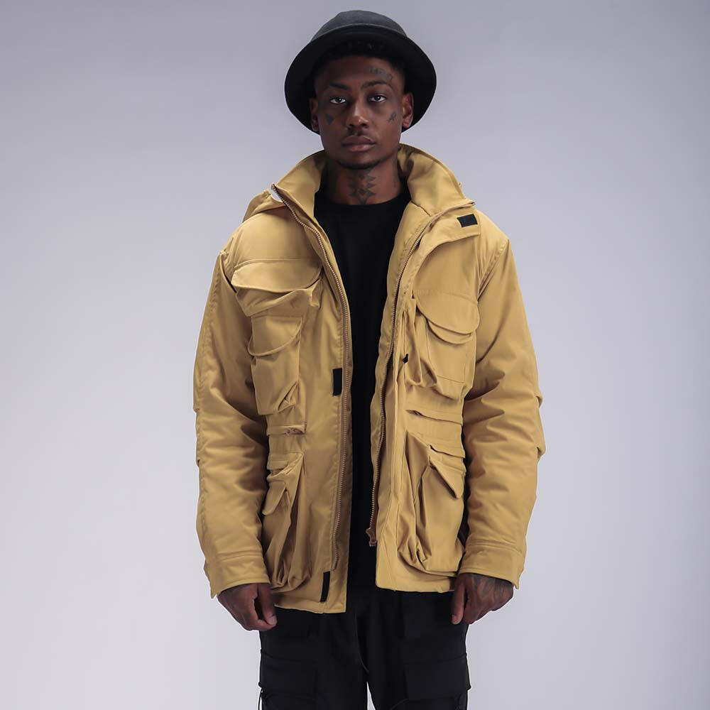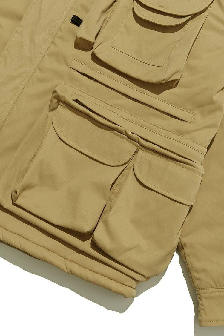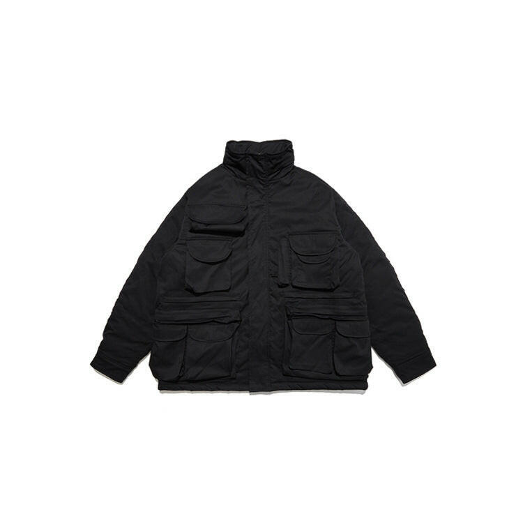Multi Pocket Functional Work Coat Loose Warm Stand Collar